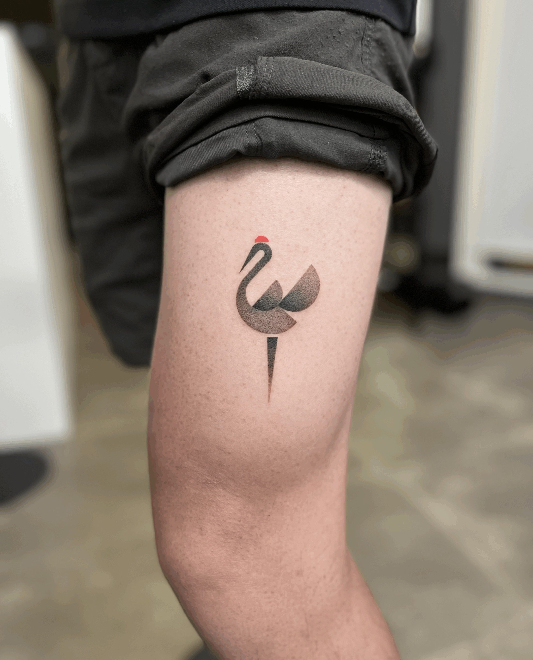 鶴は日本を代表する鳥の一つで、特に丹頂(タンチョウ)として知られます。学名はGrus japonensisで、英名にも「Japanese Crane」と日本の名が入るほど。主に北海道の湿原に生息し、冬には雪原で優雅に舞う姿が印象的です。絶滅危惧種として保護され、アーティストTakkakeiはその丹頂を幾何的な構成で、凛とした上品さと生命の躍動を表現しています。