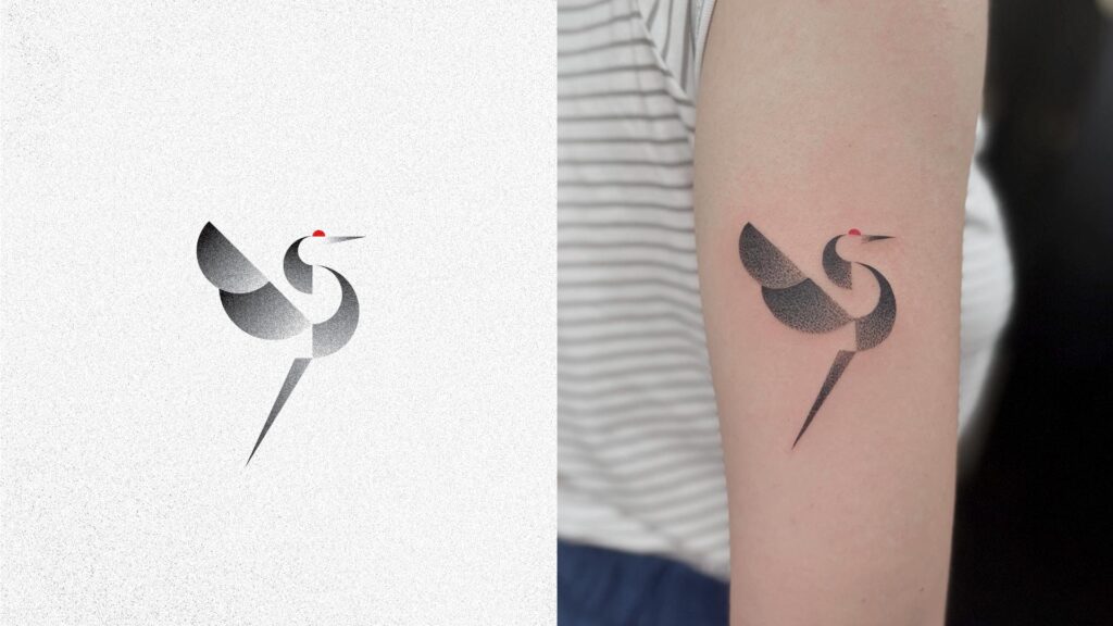 幾何学的な形態と繊細なグラデーションを用い、鶴の持つ凛とした上品さと生命の躍動を、極限までシンプルな構成で表現しています。