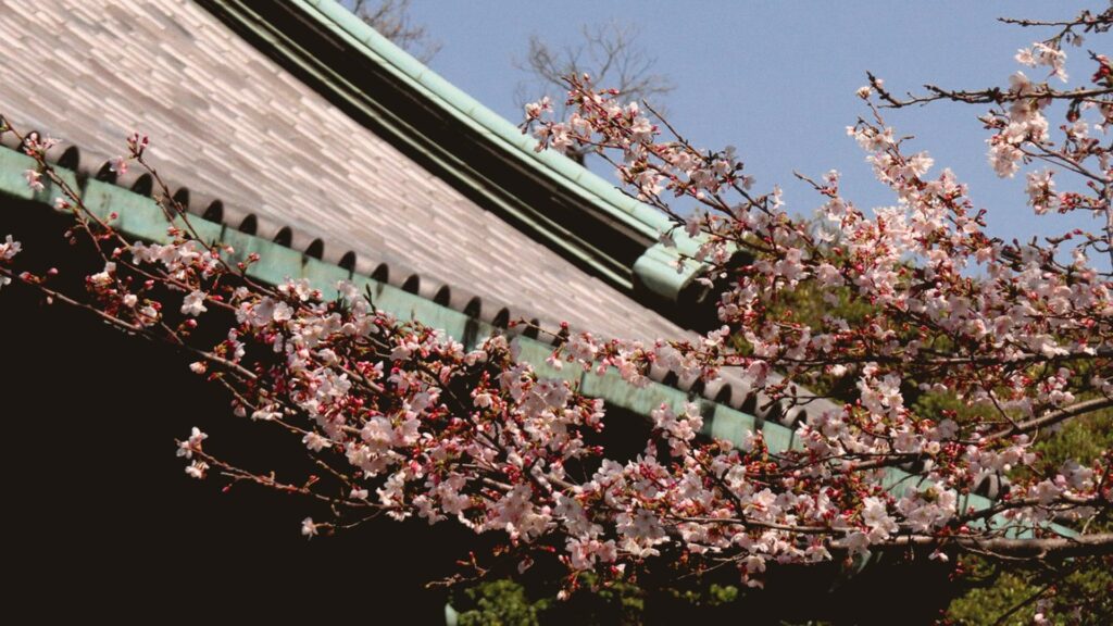 中目黒の華やかさから少し離れ、歴史の静寂に身を委ねる。「祐天寺」の境内に足を踏み入れると、重要文化財の仁王門が満開の桜に包まれ、まるで一枚の古画のような美しさを見せます。風に舞う花びらが石畳を白く染め、線香の香りと共に心穏やかな時間が流れる、知る人ぞ知る名所です。