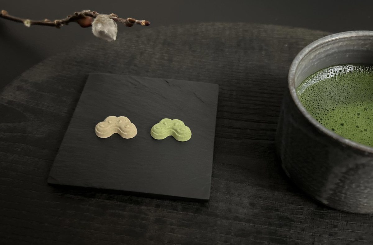 この度、ご来店くださるお客様に、ひとときの安らぎをお届けしたく、ささやかな茶菓子として落雁をご用意いたしました。近年では、日本人にとっても馴染みが薄くなりつつあるお菓子ではございますが、ほろりとほどける繊細な口溶けとともに、お茶とあわせてご賞味いただければ幸いです